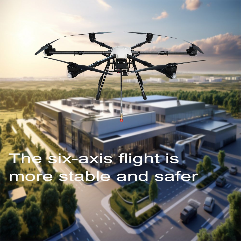 For the stability and safety of the six axis drone, we conducted a broken shaft experiment, and even if one of the blades did not work, the drone could fly normally.
